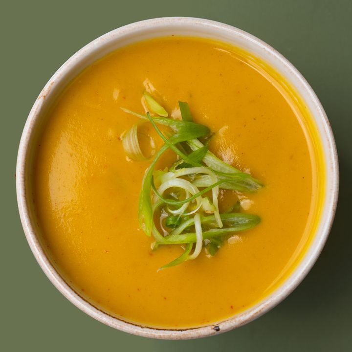 Roasted butternut squash, green apple, cinnamon & nutmeg topped with scallions